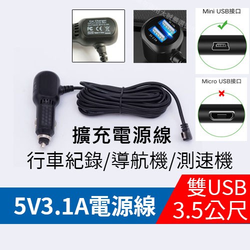 洛克潮流館 車充線3 5m 車充延長線micro Usb Mini Usb 電源線行車紀錄充電線車充線2a 露天拍賣